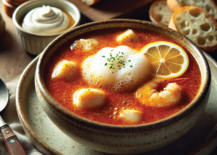 lemon flavor, which balances the richness of the fish and broth. Garnish with fresh herbs, such as dill or parsley, if desired.