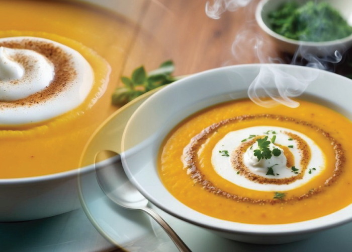 2. Blending the Soup: Once the soup has cooled down a bit, use an immersion blender or regular blender to puree it until smooth and creamy. If the soup is too thick, add more broth or water until you reach the desired consistency. Add salt, pepper, and lemon juice to taste. Adjust seasoning as necessary.