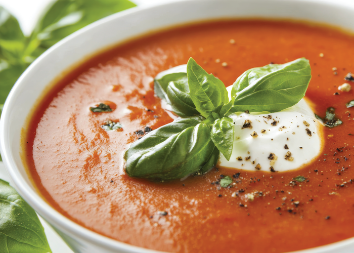 Tip: The garlic foam adds a creamy flavor to the tomato soup and balances the acidity of the tomatoes. The nitrous oxide foam creates a very light and airy texture, making the soup feel luxurious.